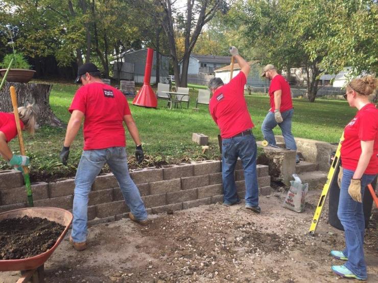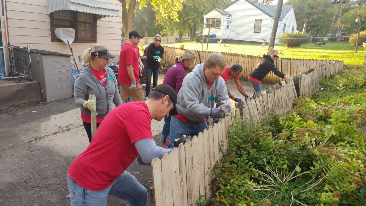 The work crew at Ilona’s house project consisted of Wells Fargo Retail Services team members from Chick Herbert’s Customer Excellence and Strategic Planning organization Danielle Mincks, Kim Connors, Rachel Bergman, Melody Johnson, Jenna Schmitt, Jesse Uitermarkt, Dustin Jeffries, and Justin Kurtz from the Merchant Training Team as well as Josh Hakes, Siju Varghese, and Chris Hanson from Strategic Planning and Product Development. The work crew had various levels of experience with Rebuilding Together, with some having worked on crews for over a decade and others experiencing their first ever rebuild. The team thoroughly enjoyed meeting Ilona and Dorothy, and they felt incredibly rewarded by the experience of improving their home.